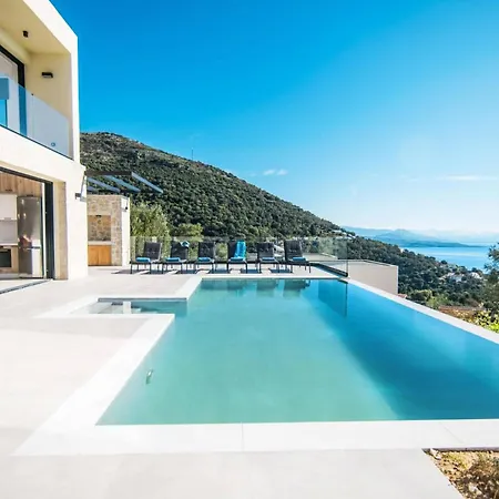 Villa Nissaki View 2 by Villa Plus设有室外游泳池,使客人放松身心. 从住所出发后,步行25分钟就可以抵达巴尔巴蒂海滩,开车10分钟就可以到达Pantokrator.